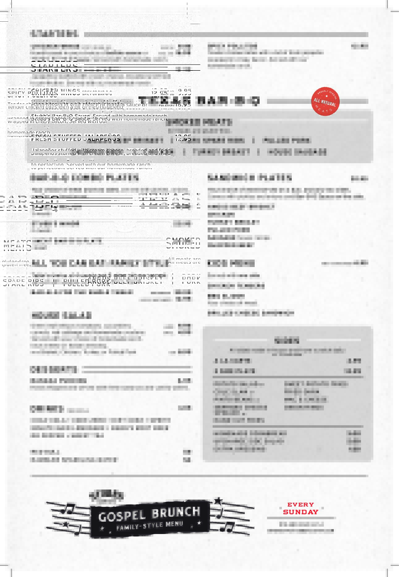 Stubb’s Bar-B-Q Menu